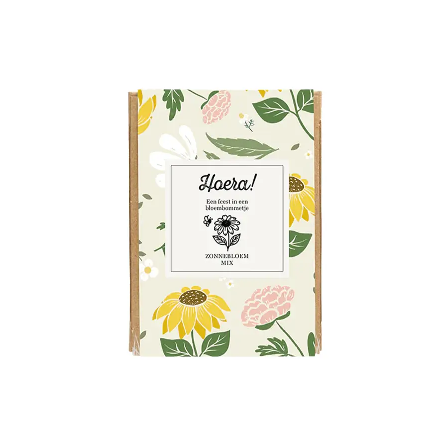 We hebben doosjes met 4 bloembommetjes, 7 bommetjes, 9 bommetjes, of 9 zaadbommetjes met jute zakje.