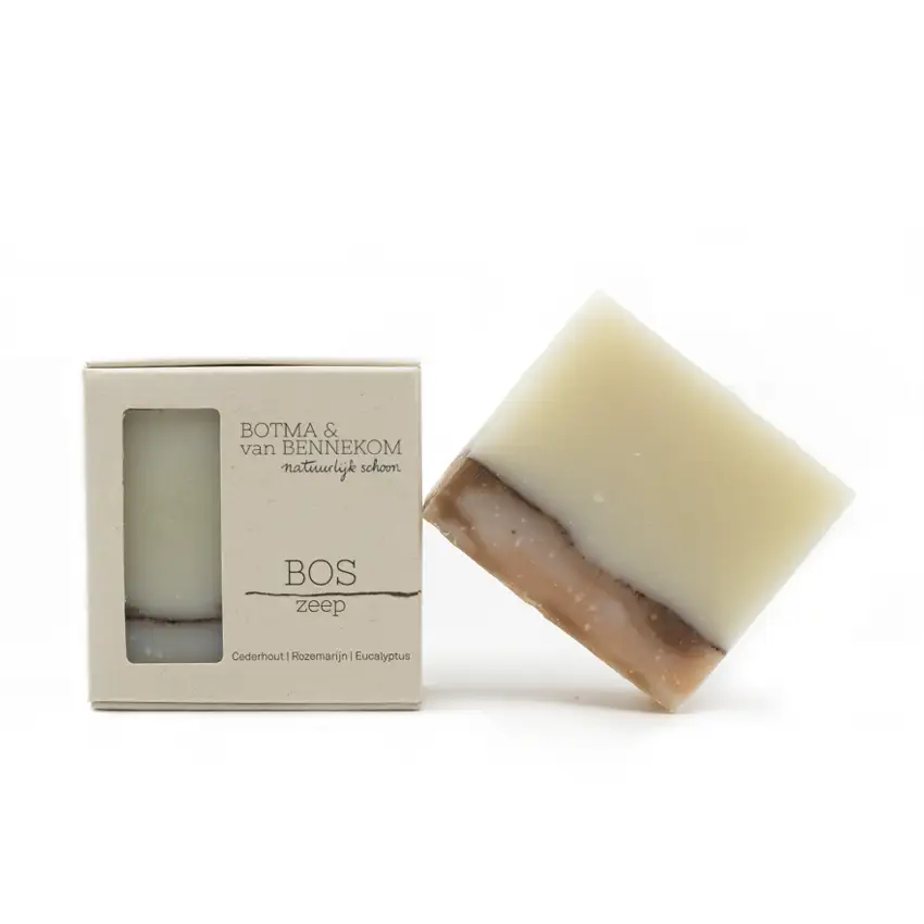 Boszeep is te gebruiken onder de douche, naast de wastafel voor je handen en voeten of voor het zacht reinigen van je gezicht. De heerlijke aardse bosgeur bestaat uit cederhout, rozemarijn en eucalyptus. De hoofdingrediënten zijn olijf- en kokosolie voor een natuurlijke reiniging. De groene klei in deze zeep heeft een zuiverende werking en bevat veel heilzame mineralen die goed zijn voor de huid.