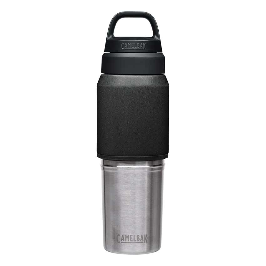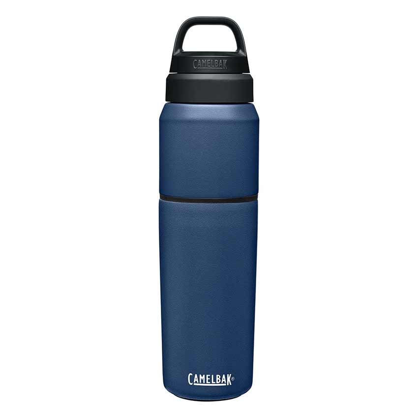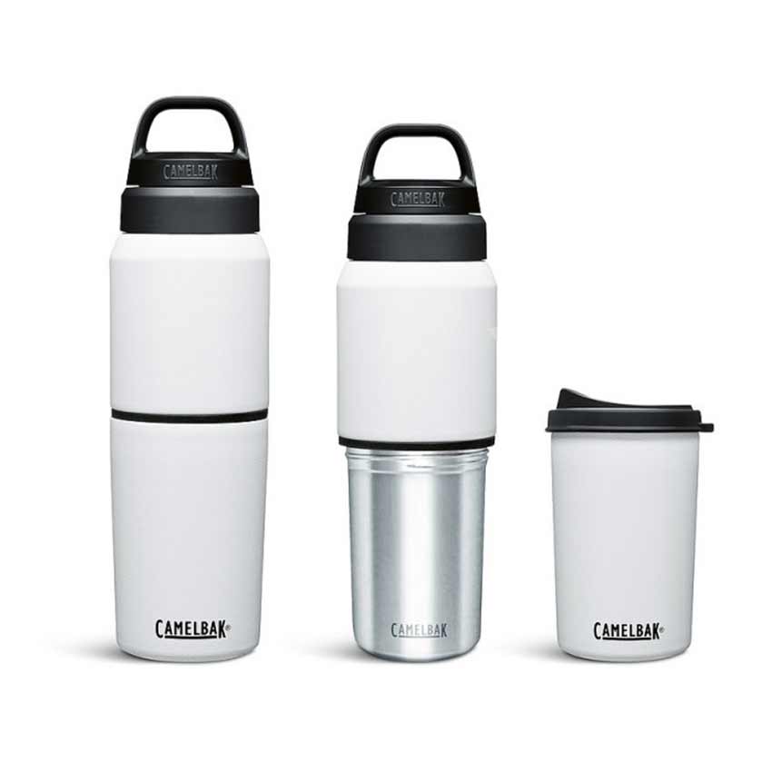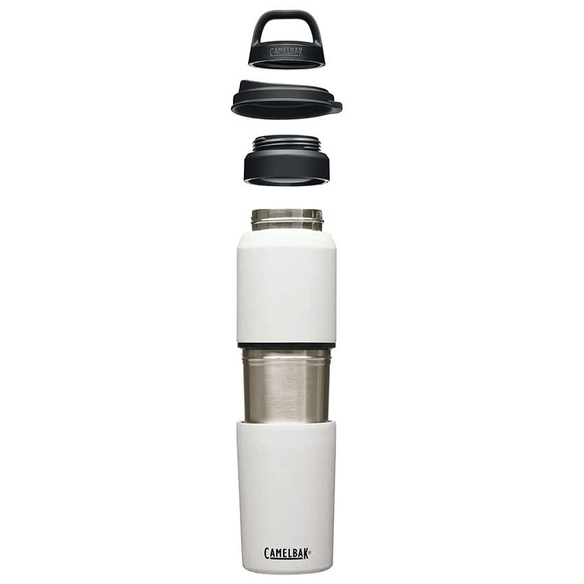 De CamelBak MultiBev is een thermosfles en beker in één. Een stijlvolle, compacte oplossing voor als je én een waterfles én een beker wil meenemen. Deze combinatiefles bestaat uit een thermosfles van 0,65 liter + een koffiecup van 0,5 liter. Deze waterfles is dubbelwandig, vacuüm geïsoleerd en gemaakt van roestvrijstaal.