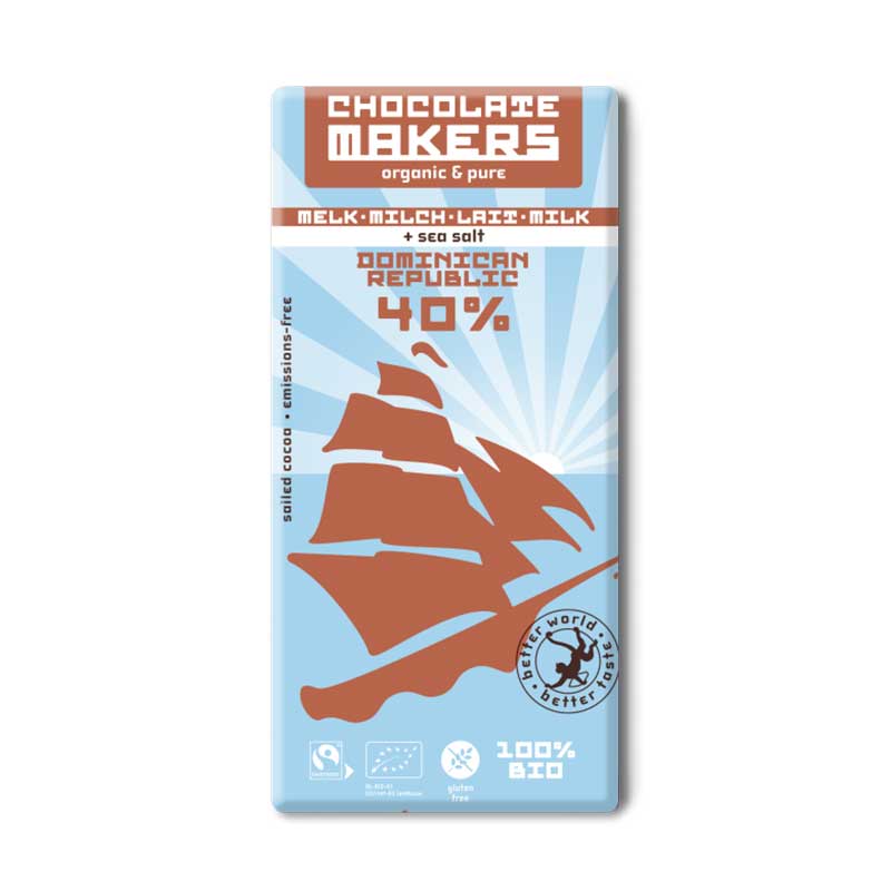 Chocolatemakers staat voor duurzaam geproduceerde grondstoffen én een duurzame logistiek- en productieketen. Ze proberen zoveel mogelijk cacao met het zeilschip, de Tres Hombres, mee te laten reizen. Volledig op windkracht; er is geen motor aan boord! Dat kost meer geld en duurt gemiddeld 4 à 6 maanden per overtocht. De repen met een zeilschip op de verpakking (met Cacao uit de Dominicaanse Republiek en Colombia) worden allemaal gemaakt van de ‘zeilboot-cacao’. De bonen komen 2 x per jaar met de Tres Hombres mee.