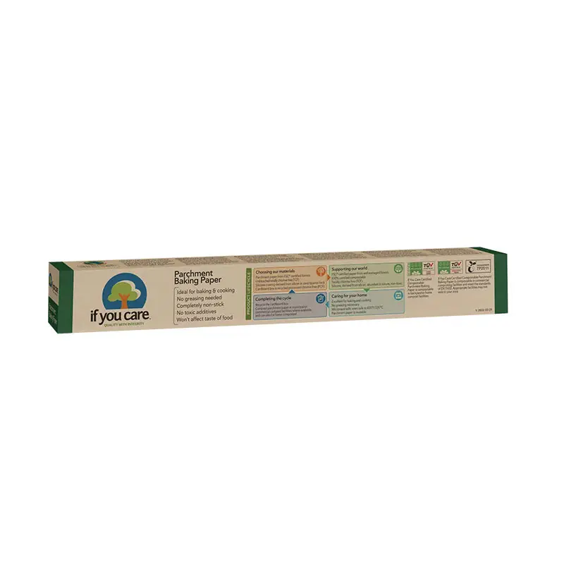 If You Care bakpapier laat je met een gerust hart bakken. De anti-aanbak eigenschappen zijn perfect. Het ongebleekte bakpapier is volledig chloor- en gifvrij en is voorzien van een laagje natuurlijke siliconen voor het gebruiksgemak. In tegenstelling tot andere composteerbare alternatieven geeft If You Care bakpapier een zeer goed resultaat bij het bakken. Zelfs in de stoomoven!