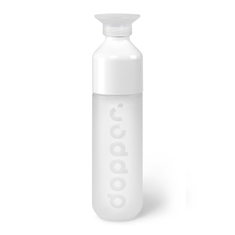 Iedere dag worden er in Nederland ongeveer 500.000 plastic flesjes weggegooid! Om die berg plastic afval terug te dringen en het voorkomen van de plastic soup heeft Dopper dit handige waterflesje ontwikkeld. Eindeloos herbruikbaar, mooi, en makkelijk schoon te maken en zonder schadelijke stoffen zoals BPA. Vergeet dure wegwerpflesjes en neem altijd je eigen mooie fles mee. Zo bespaar je veel geld en help je het milieu.