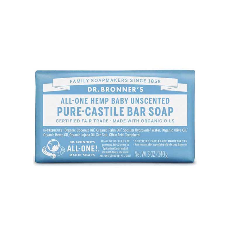 Pure Castile Blokzeep van Dr. Bronner is een natuurlijke en plantaardige zeep. het bevat merendeels Fairtrade ingrediënten en pure biologische oliën. De Castile Zeep noemt zichzelf een 18 in één zeep, omdat je het werkelijk waar voor elke schoonmaakklus kunt gebruiken: voor lichaam en haar, voor huis- en vaatwerk, voor viervoeters en baby’s… kortom: Castile zeep van Dr. Bronner is de enige zeep die je nodig hebt!