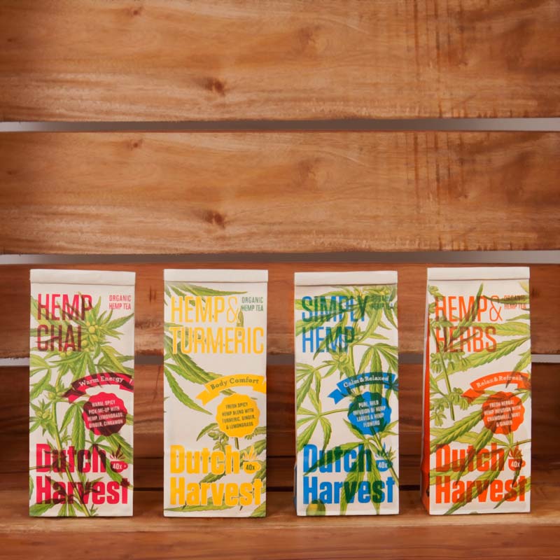 Dutch Harvest hennepthee (officieel: hennep ‘infusie’), is gemaakt van bladeren en bloemen van de hennepplant. Op het moment van oogsten hebben zich ook al beginnende zaden gevormd in de bloem, deze zullen dus ook in de theemelange zitten. Zoals de naam al doet vemoeden, wordt de hennep voor deze thee geteeld in Nederland, namelijk in Oude Pekela. Een echte Nederlandse thee die niet alleen biologisch geteeld is, maar ook minimale kilometers hoeft af te leggen om je te voorzien van een lekker kopje Dutch Harvest thee.