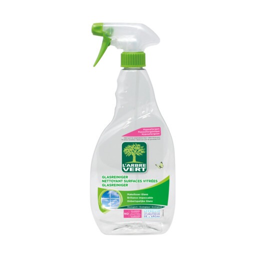 L’Arbre Vert ecologische glasreiniger heeft een aangename geur van munt en maakt glanzende oppervlakken zoals ramen, douchewand en spiegels stralend schoon en geeft langdurige glans.