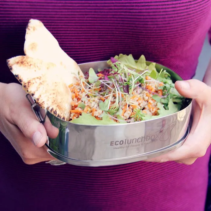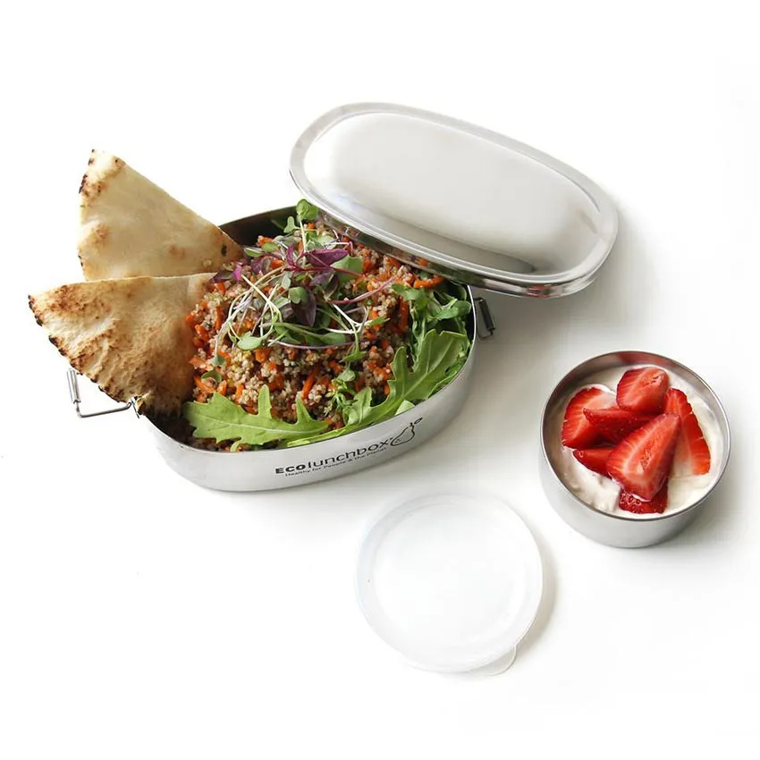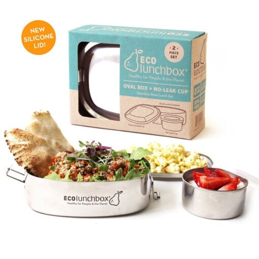 De eco lunchbox Oval + Leakfree Cup is een duurzame lunchbox van RVS die een leven lang meegaat. Je kan er iedere soort lunches in meenemen of je kunt ‘m gebruiken als handige bewaardoos. Het is een lunchbox en bewaardoosje zonder plastic, zodat je niet meer bijdraagt aan plasticvervuiling.