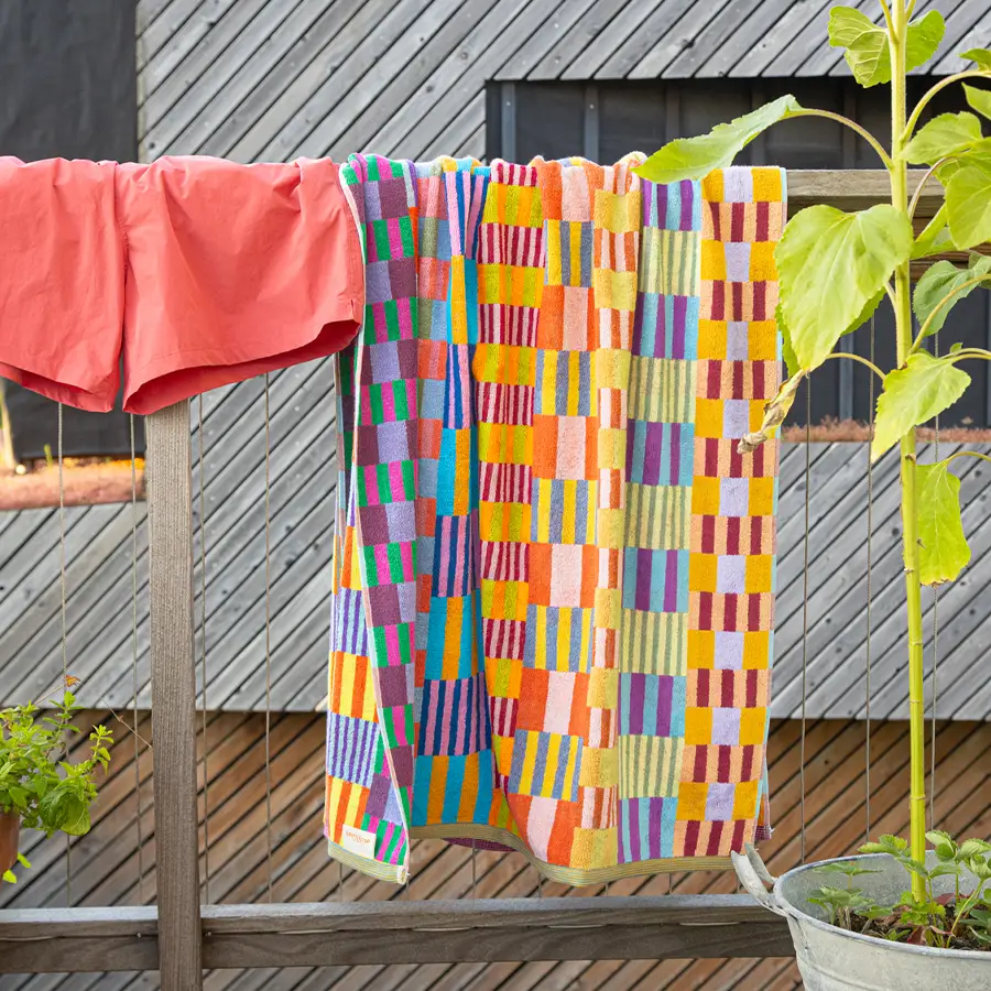 Met de strandhanddoeken van Foekje Fleur – Odds&Ends neem je kleur mee naar het strand, zwembad of het park. De strandhanddoek is een grote handdoek zoals je die vast al kent, maar deze is zeker kleurrijker. De strandhanddoek neemt door de manier van weven goed water op en droogt ook weer snel.