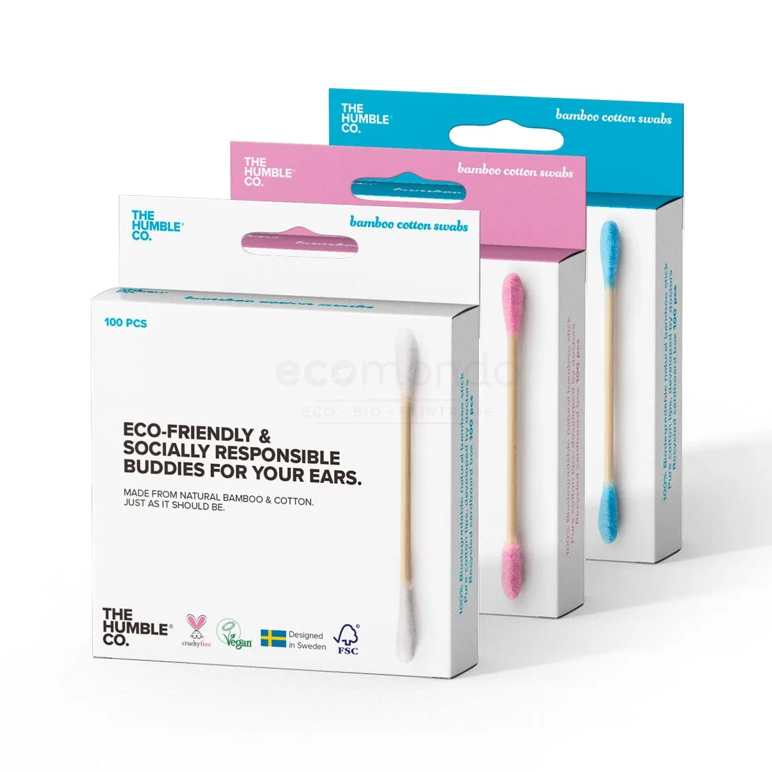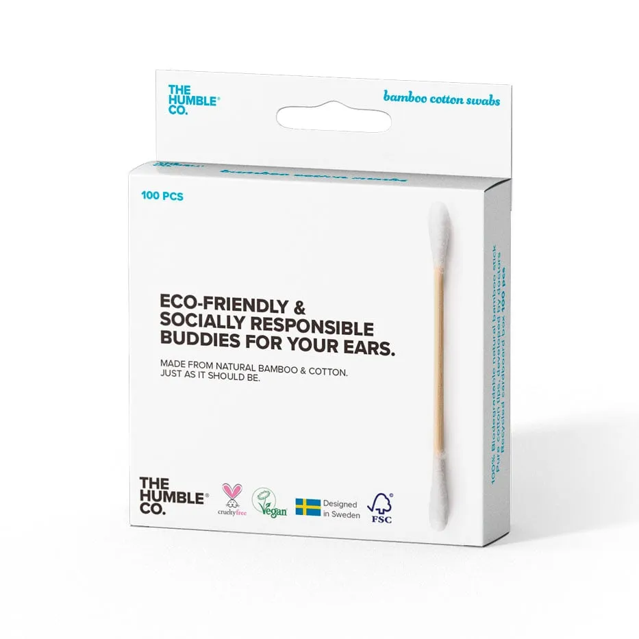 Humble Brush wattenstaafjes zijn gemaakt met stevige bamboe stokjes in plaats van papier. De topjes zijn gemaakt van zacht bio katoen. Voor bamboe zijn veel minder fossiele brandstoffen nodig om het te produceren en zo komt er minder CO2 vrij. Sterker nog, bamboe neemt juist CO2 uit de lucht op. Deze wattenstaafjes kunnen na gebruik in de GFT container of op de composthoop, waar de natuur zijn werk doet en er weer grondstoffen van maakt (niet geschikt voor de wormenbak). Gooi je ze toch bij het huisvuil dan zijn ze niet schadelijk.