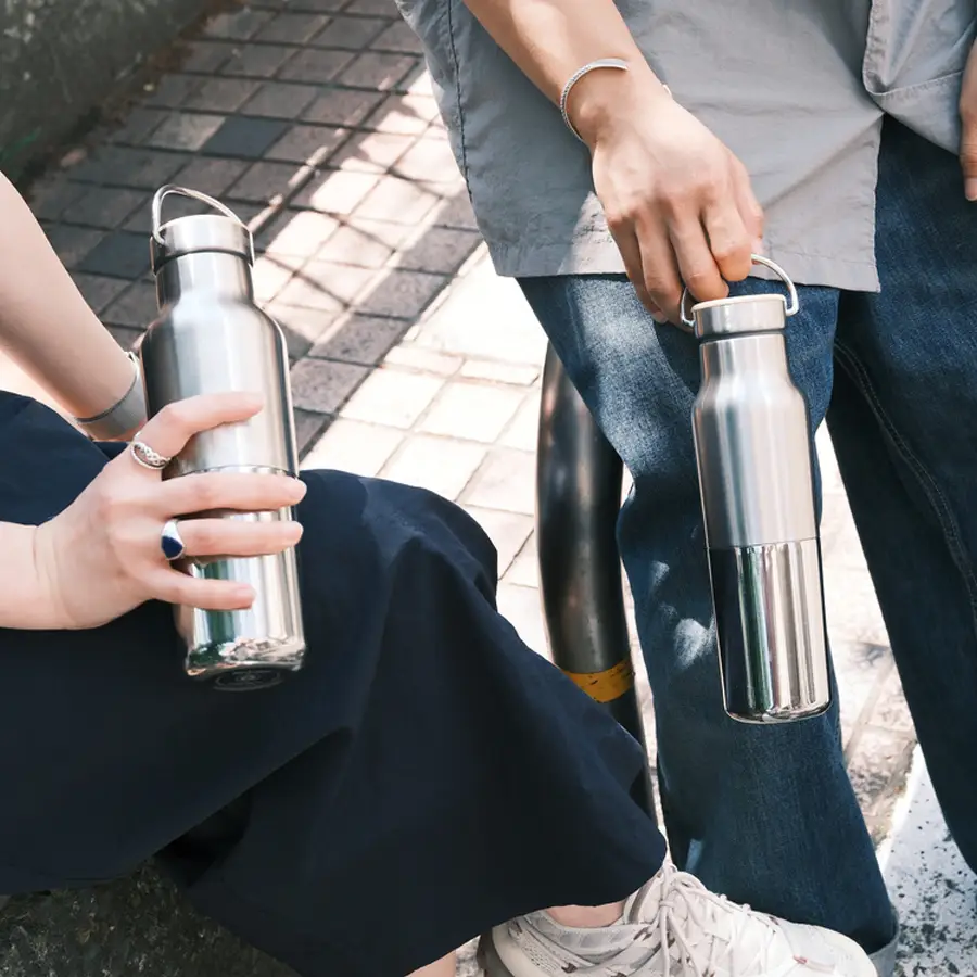 Deze rvs thermosfles is dubbelwandig vacuüm geïsoleerd. Je drankjes blijven 24 uur warm of 74 uur koud. In de opening van de waterfles passen ijsblokjes.