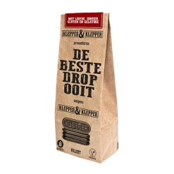 En dat is niet alles! Klepper & Klepper is ook nog eens Glutenvrij! Gluten is een mengsel van eiwitten dat van nature voorkomt in bepaalde granen, zoals tarwe, spelt en rogge. Vanzelfsprekend vind je gluten daardoor in brood, crackers, koekjes, cake, pizza en pasta. Maar je vindt het ook in producten waarin je het minder snel verwacht, zoals kant-en-klare soepen, je favoriete biertje en… drop. Althans, in de meeste drop. Niet in De Beste Drop Ooit. Dat komt zo: in heel veel drop zit tarwezetmeel om het dropje een bepaalde byte te geven, terwijl in De Beste Drop Ooit aardappelzetmeel zit!