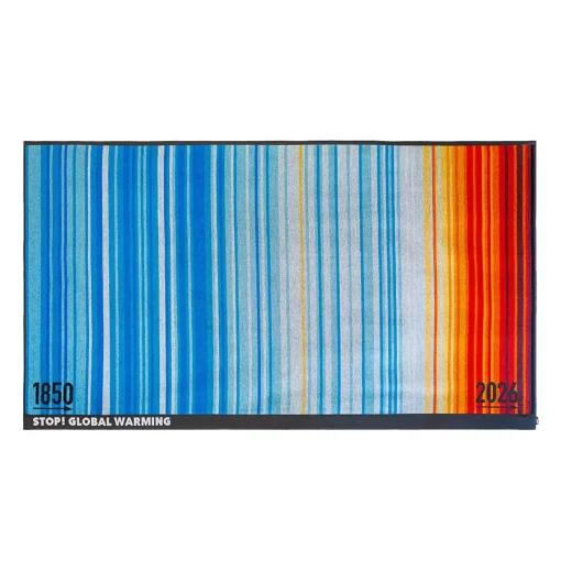 Deze klimaathanddoek of strandlaken van biokatoen is een mooi en duurzaam cadeau voor jezelf of voor een bewuste vriend(in). Twee jaar geleden kwam klimaatwetenschapper Ed Hawkins op het idee om de gemiddelde temperatuur van alle jaren vanaf 1850 weer te geven met een kleurcode. Zo kunnen mensen in één keer zien hoe de temperatuur op aarde stijgt. Hoe donkerder blauw, hoe lager de temperatuur. En hoe donkerder rood, hoe hoger de temperatuur. De warming stripes laten in één oogopslag zien hoe de temperatuur van de aarde in de afgelopen decennia is gestegen (lees meer).
