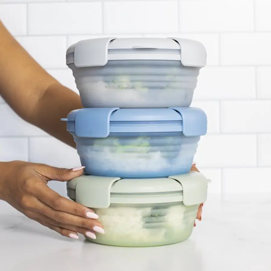 De Stojo Bowl is een handige opvouwbare kom of bewaardoos van food grade siliconen die je perfect als lunchbox voor onderweg kan gebruiken of gewoon als vershouddoos om ruimte te besparen in je keukenkastjes. Om de kom in te klappen verwijder je eenvoudig de deksel, vouw je de Stojo in als een harmonica en klik je de sluitingen dicht. De Stojo Bowl ook zo goed als lekvrij: je kunt er geen soep in meenemen, maar bijvoorbeeld wel een pastasalade. Wil je wel een 100% lekvrije bewaardoos hebben, kijk dan naar de Mepal Circula serie.