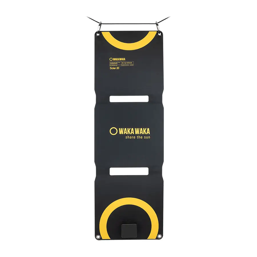 Waka Waka Solar 20 panel dat compatibel is met: smartphones, powerbanks, lampjes en meer. Laad apparatuur op direct in de zon. Met 400 gram is dit een lichtgewicht zonnepaneel dat je makkelijk mee kunt nemen naar de camping, outdoor avonturen en met hiken.