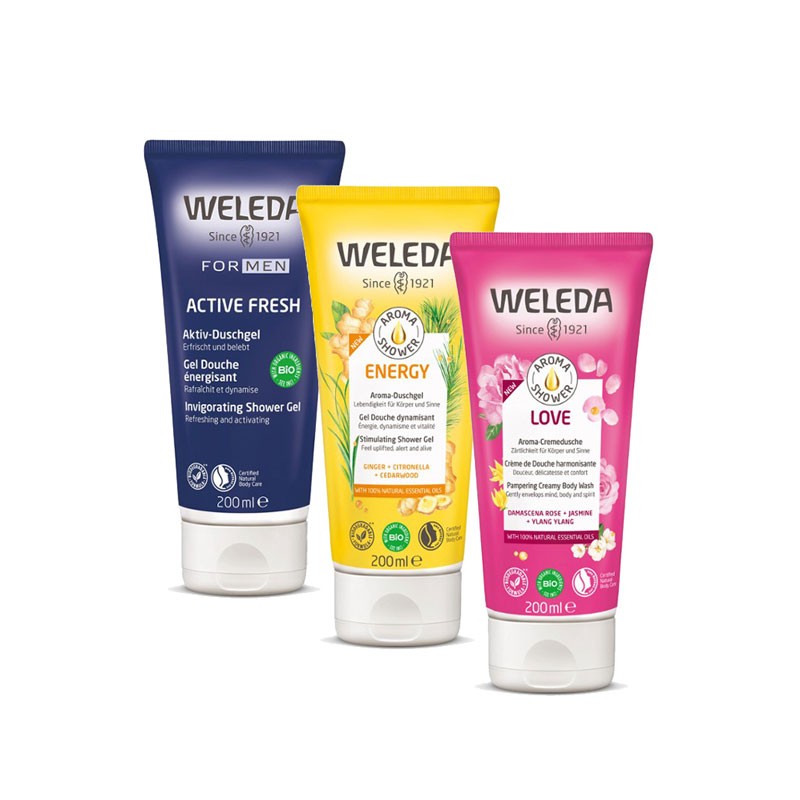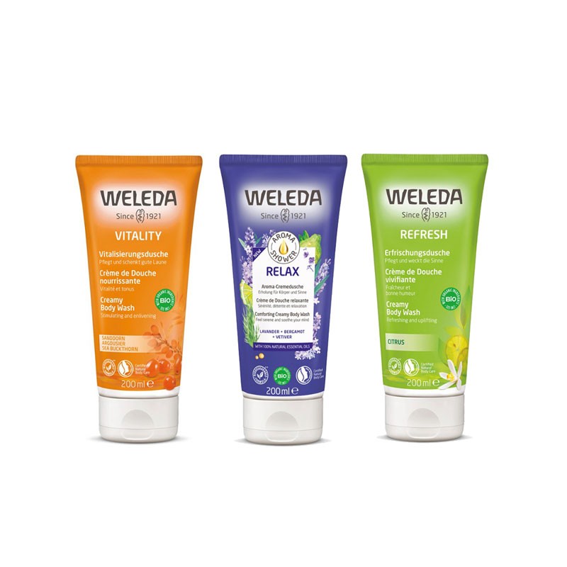 Weleda Douchegel en Douchecreme zijn reinigende en voedende bodywashproducten die ook nog eens gemaakt zijn van uitsluitend natuurlijke en biologische ingrediënten. De heerlijke geuren werken aromatherapeutisch en de formules zijn zacht voor de huid.