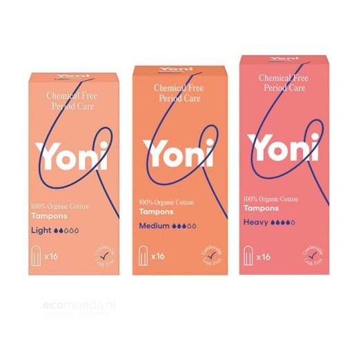 Chemicals are not for pussies! Dat is de filosofie achter de natuurlijke tampons van Yoni. Yoni wil dat elke vrouw kan kiezen voor gezondere en milieuvriendelijkere tampons, maandverband en inlegkruisjes. “Toen wij er achter kwamen dat de meeste tampons, maandverband en inlegkruisjes synthetische stoffen bevatten, schrokken we. Niet alleen plastics, maar ook resten van chloor en sporen van pesticiden worden teruggevonden in deze intieme producten. Deze stoffen horen niet thuis in of naast één van de meest absorberende delen van je lichaam. Daarom zijn we Yoni begonnen. Wij geloven dat elke vrouw zou moeten kunnen kiezen voor gezondere en milieuvriendelijkere tampons, maandverband en inlegkruisjes. Daarom maken wij producten van biologisch katoen. Verder niets. Geen plastic, geen chloor, geen pesticiden.”